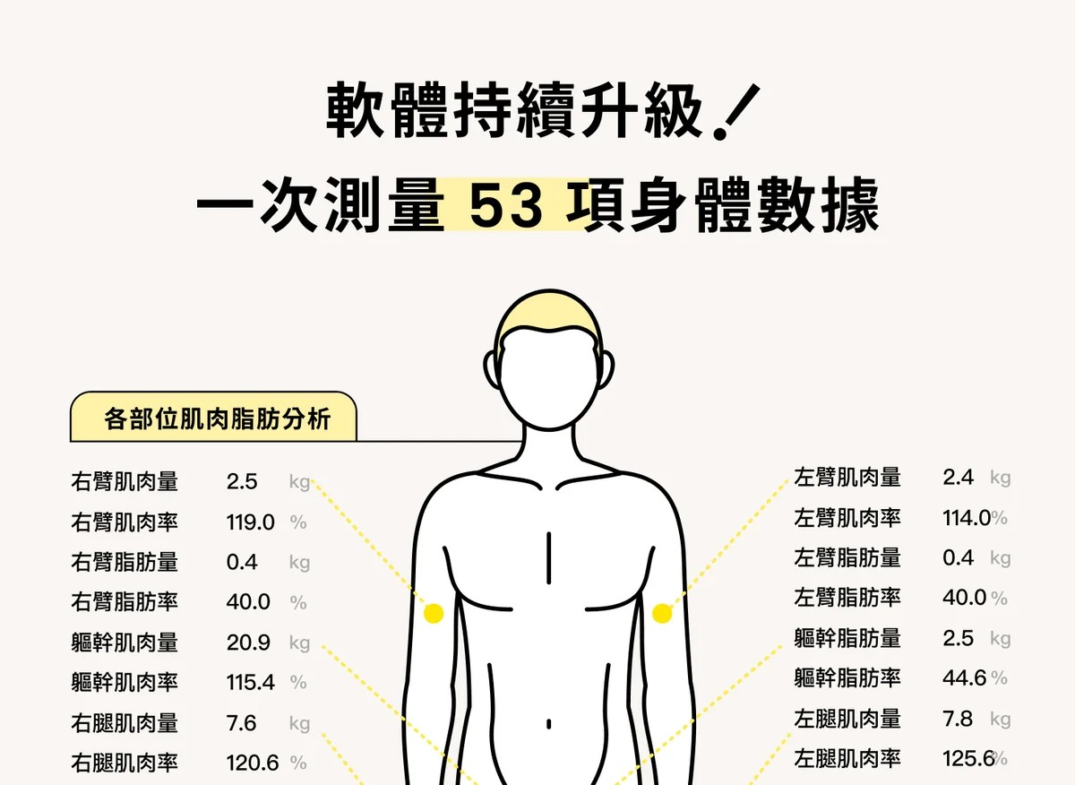 不需要特地外出、或是花費高昂的會員價格,只要在家踩上 XOFIT ,就能輕鬆獲得 53 項全身關鍵數據!
